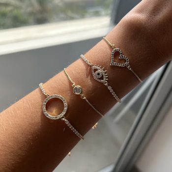 Pulsera Ajustable Bright Protection de acero inoxidable con doble baño de Oro Amarillo 18K y cristales.