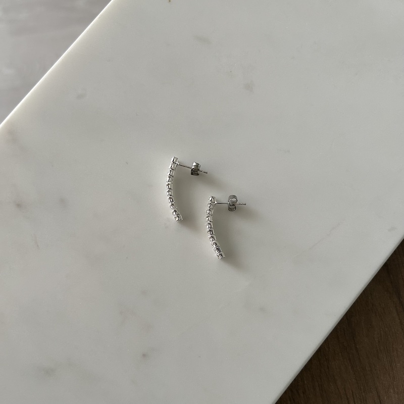 Aretes Livia Shiny de acero inoxidable con doble baño de Rodio y detalles de cristales.